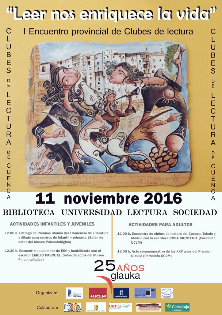 Ya por la tarde a las 18:00 horas tendrá lugar el Acto conmemorativo de los XXV años del Premio Glauka: 25 años de lecturas compartidas, con el discurso inaugural de Pedro C. Cerrillo «El poder de la literatura». Está prevista la intervención de varios escritores Premios Glauka: Carmen Posadas, Lorenzo Silva y Emilio Pascual.